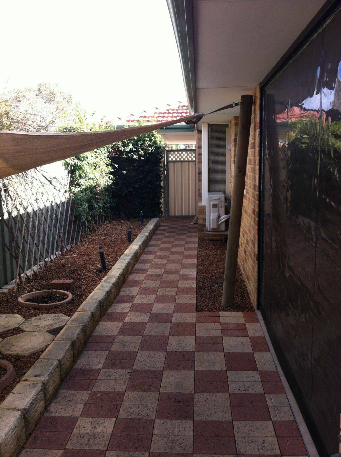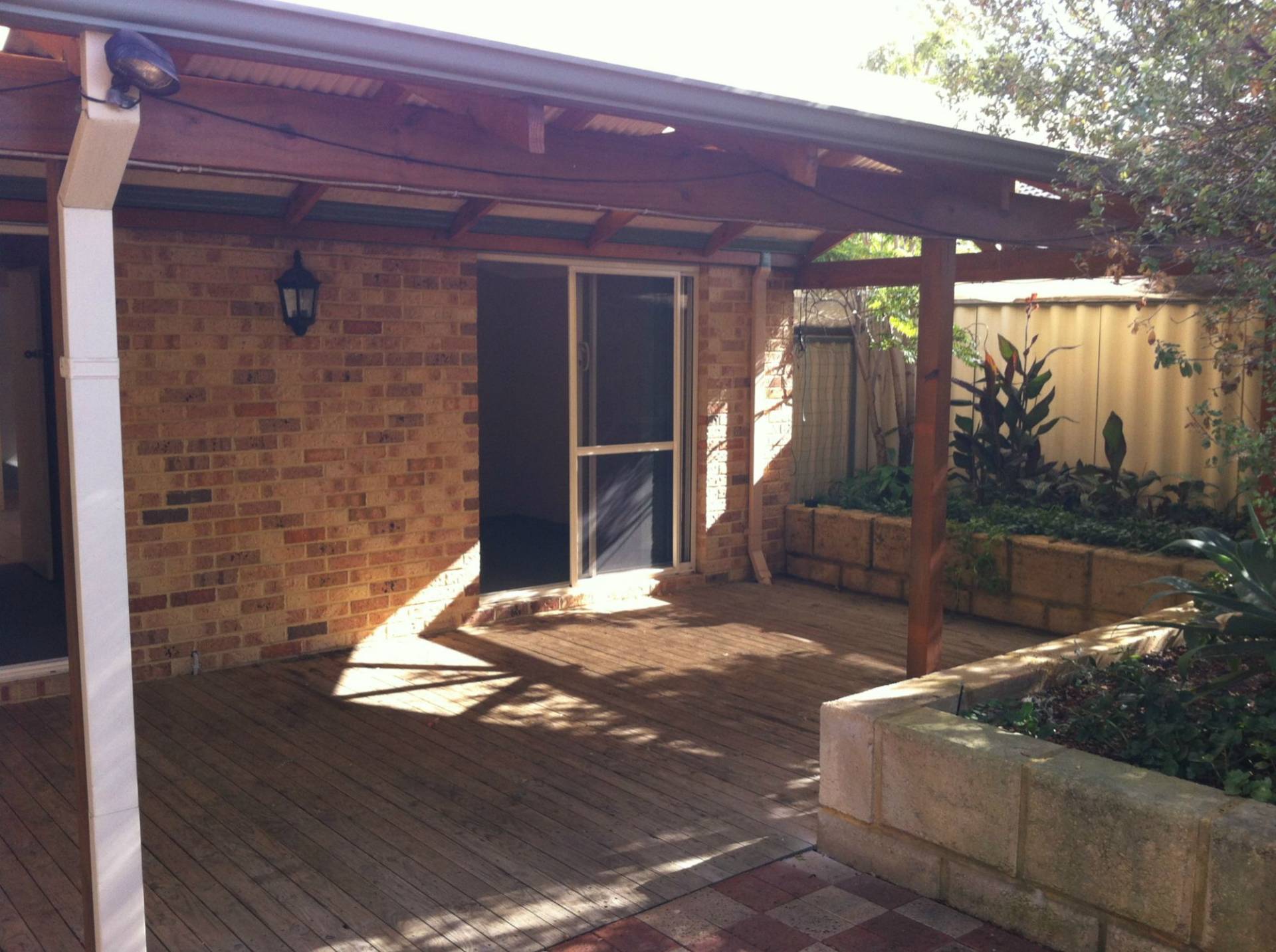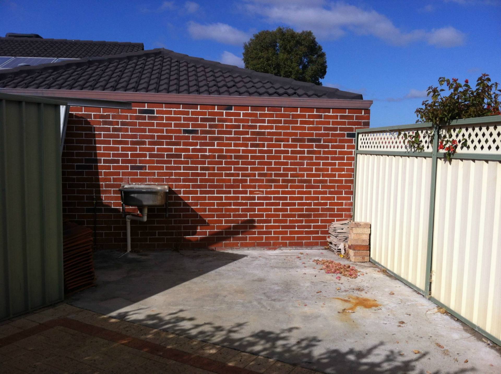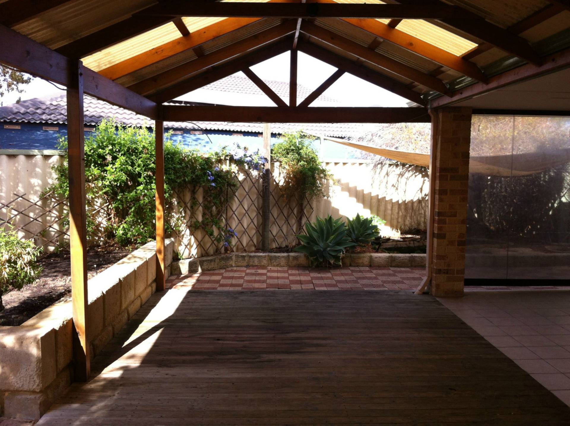 - Outdoor area has built in timber bench, cafe blind and basin with cold water tap