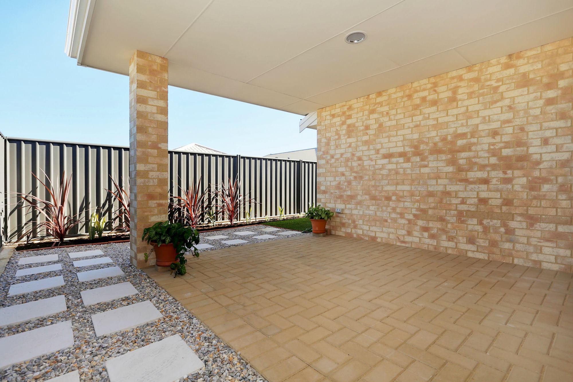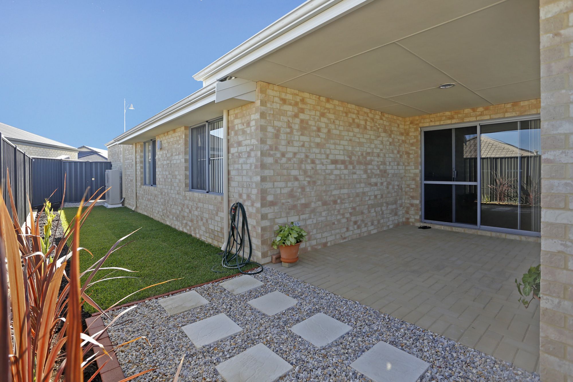 • Covered patio with easy maintenance garden