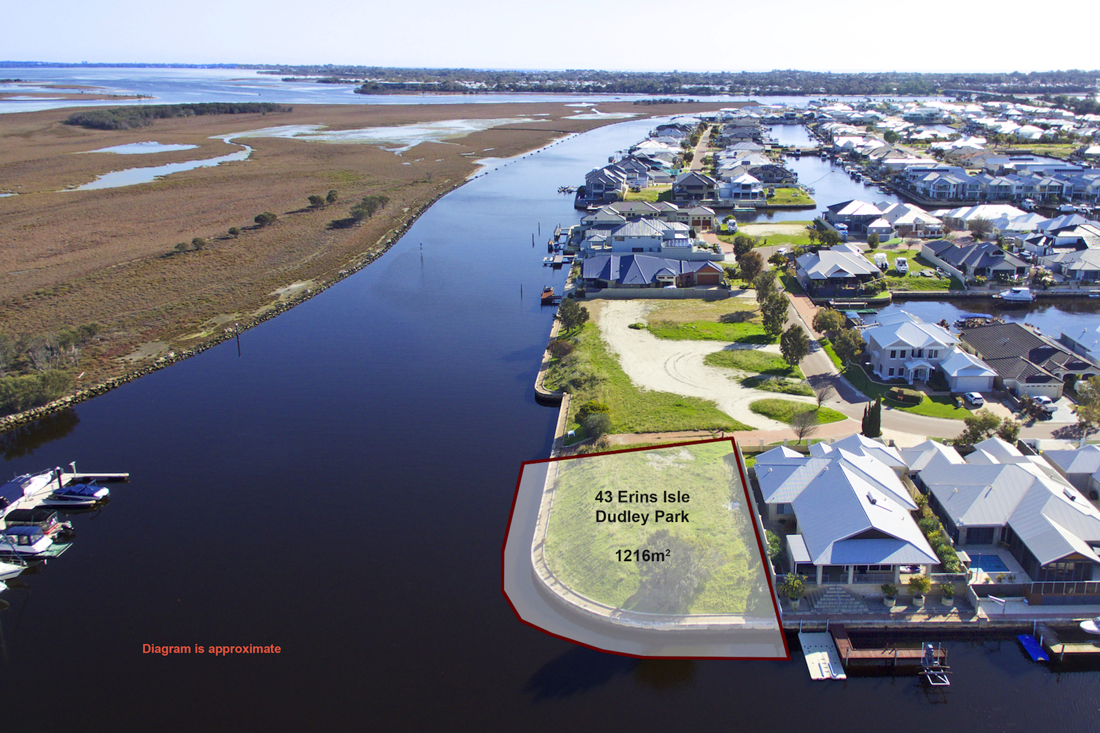 Sitting strategically and with full water frontage and large water envelope in the prestigious Mariner’s Cove-Dudley Park quiet cul-de-sac, this rare 1216 sqm block is up for grabs! Build your dream home on this would be the LARGEST BLOCK here as it overlooks the scenic Cove and Nature’s reserve, and with just a mere 10 minutes’ boat ride to the heart of Mandurah, Marina, Shops, Retail and Restaurants, and other social and communal facilities.