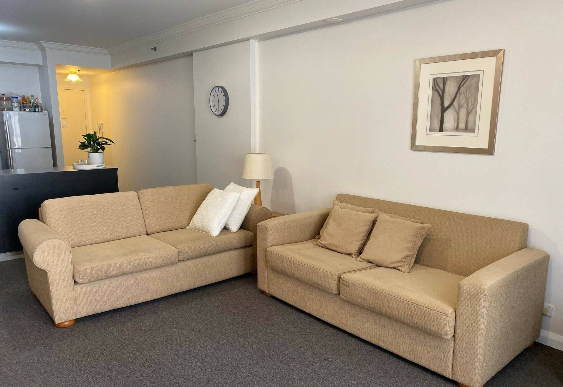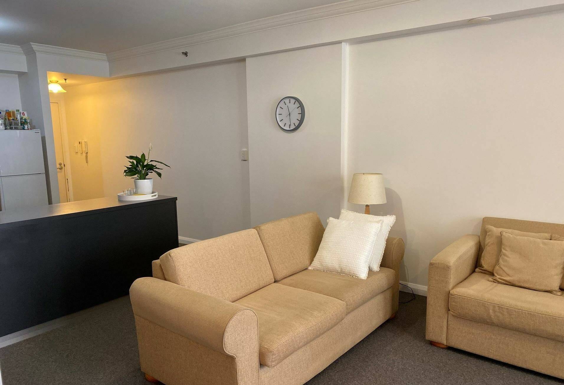 ·        The kitchen is a good size and features tiled splashbacks, overhead cupboards and electric oven/hotplates.