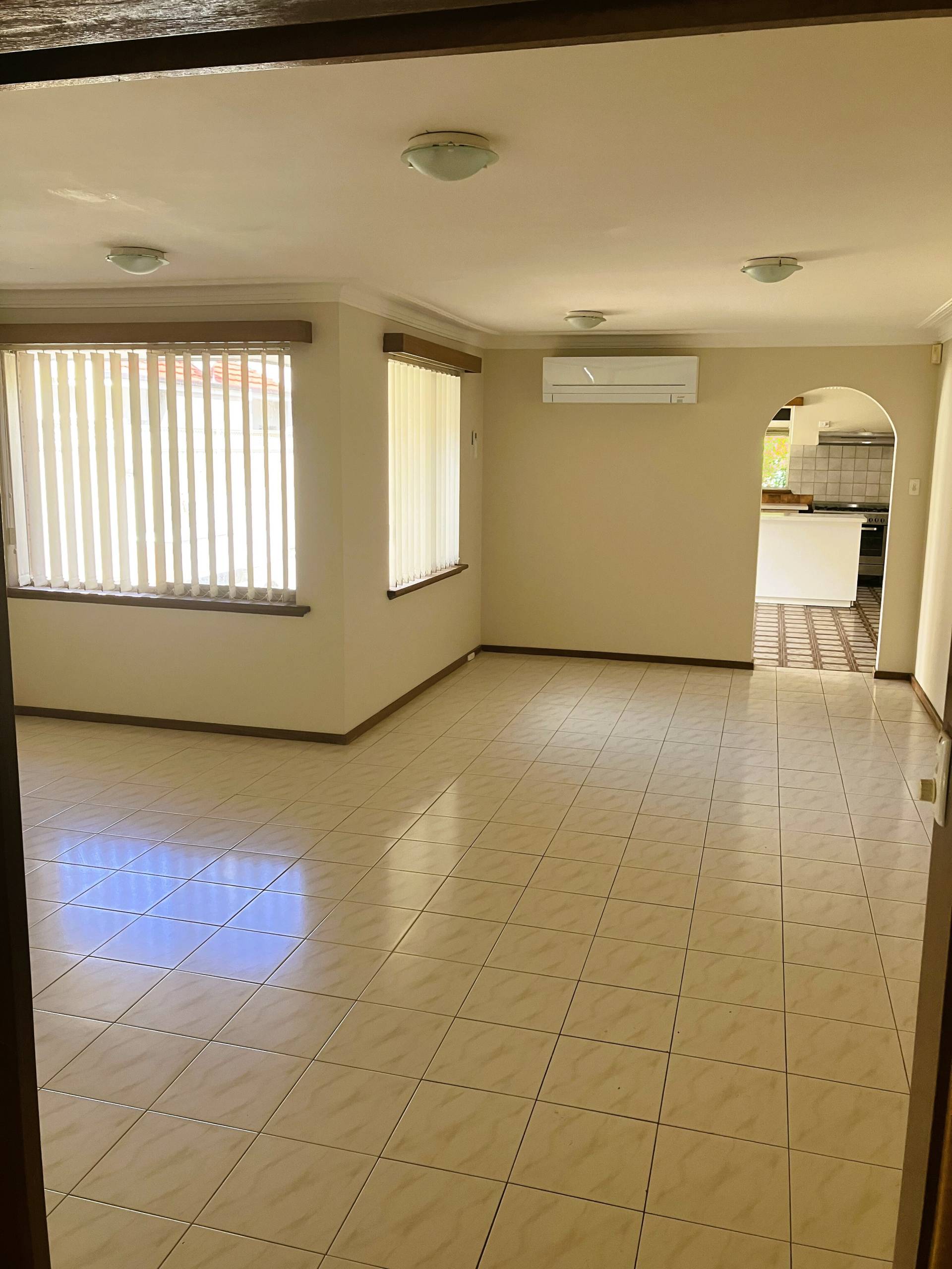 • Spacious living area with new floor tiles.