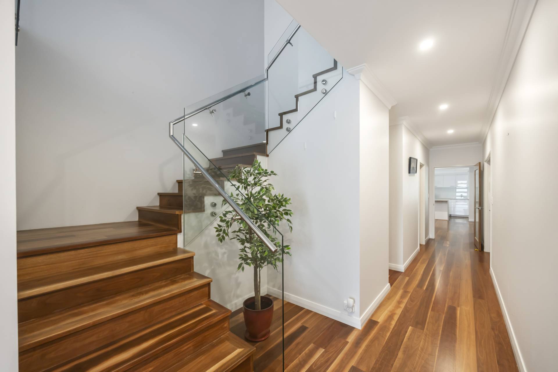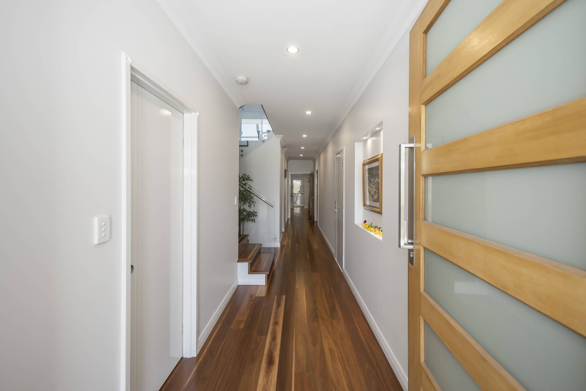 ·       Grand entrance to a beautiful hardwood timber floor hallway to a beautiful home