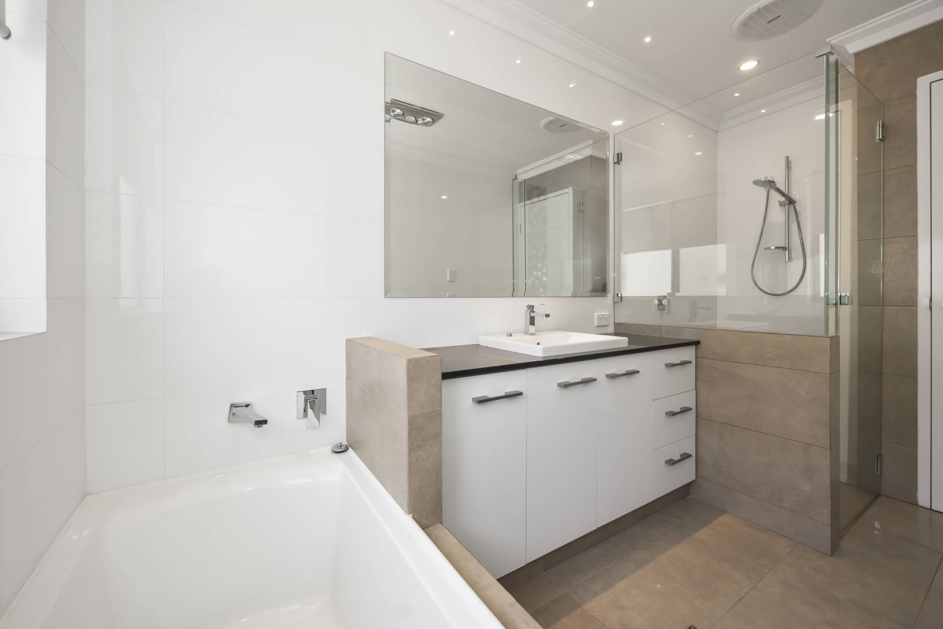 ·       The master bedroom upstairs is a private and spacious precious getaway with a walk-in robe, a double his and her sinks, stone benchtops amidst a floor-to-ceiling tiling